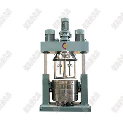 本機是一種無死點高低速結合、強力分散混合攪拌設備,適用于化工、輕工、食品、制藥、建材、農藥等行業的固—液、液—液相物料的混合、反應、溶解、分散等工藝,如粘膠劑、硅酮密封膠、聚氨酯膠、丙稀酸膠、汽車密封膠、及封裝膠、軟膏及漿糊狀物料、潤滑脂及油漆、膏狀化妝品、油墨及顏料及乳劑、膏狀食品及添加劑等的制作這種混合機可以與各種生產形式同時進行,單速、雙速、變速、三種速度可供選擇,滿足各種工藝要求。強力分散機釜內有三種不同形式的攪拌器,其中一個攪拌器慢速刮壁旋轉,其余兩面攪拌裝置又以不同的轉速繞自身軸線高速運轉,使物料在釜內作復雜的運動,受到強烈的剪切和搓合。設備內山形刮壁刀繞釜體軸線轉動,將粘在壁上和底部的原料刮出參與混合,使其效果更為理想。設備密封性好,可抽真空,具有良好的排氣除泡效果。設備釜蓋可液壓升降。釜體可自由移動,操作十分方便。攪拌器的形式,根據物料要求可為多層漿葉式、框式、蝴蝶式、外輪式等。